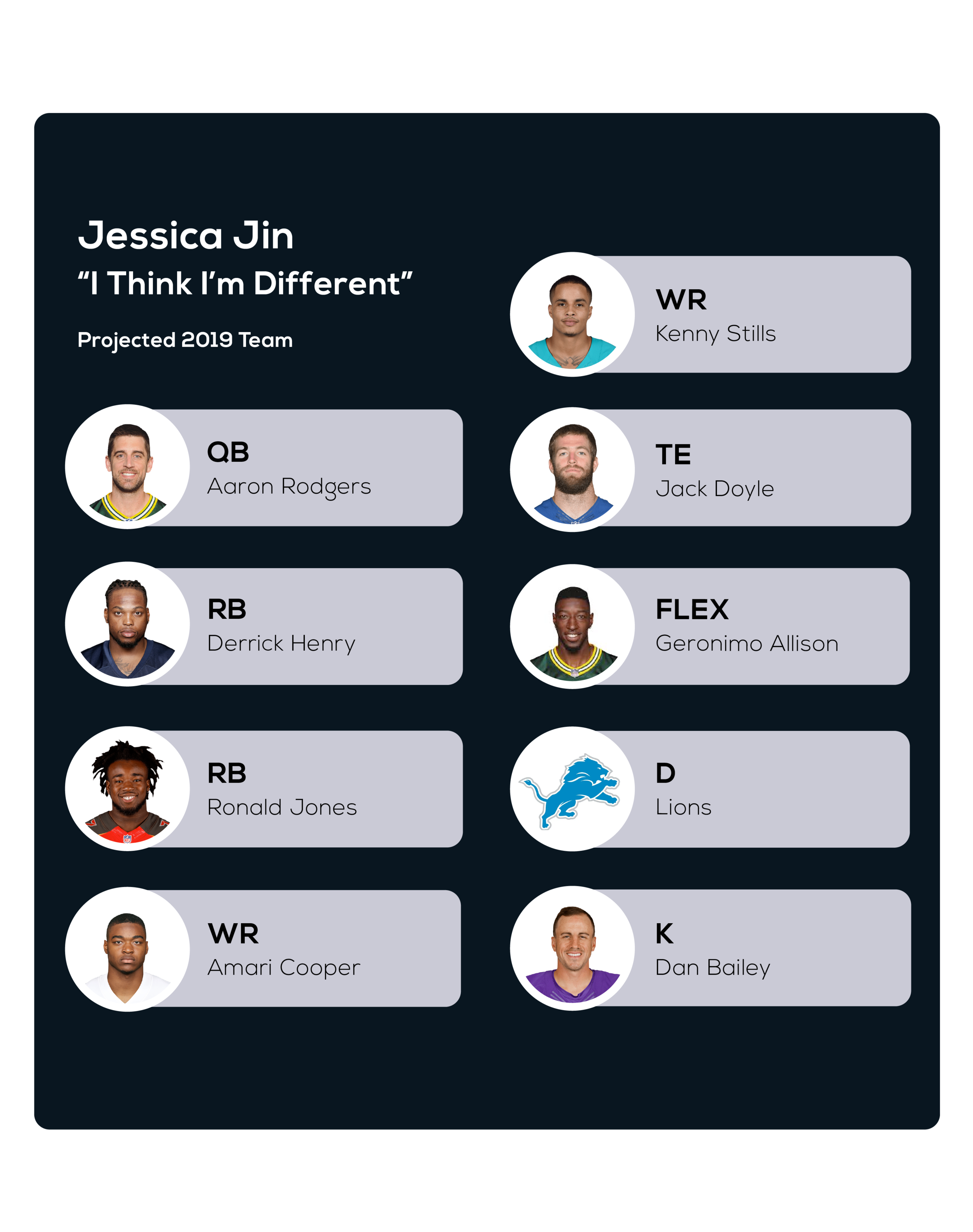 If complaining was correlated with performance, then Noah would be the top seed for 2019. We’ll see if bench capacity and waiver rules were his only barriers to success… Hopefully, staring at Kethan’s photo day in and day out will add some spice to an otherwise vanilla strategy.